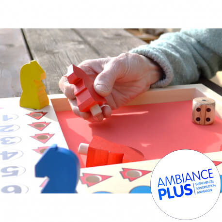Redécouvrez le plaisir des jeux traditionnels avec ce jeu de société géant de qualité fabriqué en bois massif. Le plateau offre un parcours aéré, coloré et très lisible, tandis que les pions en bois en forme de chevaux mesurent 6 cm de hauteur, assurant une prise en main agréable et facile. Les détails sont soignés, avec des cases bien espacées sur le plateau, des dés de grande taille (3 cm) et des chevaux de couleurs distinctes.